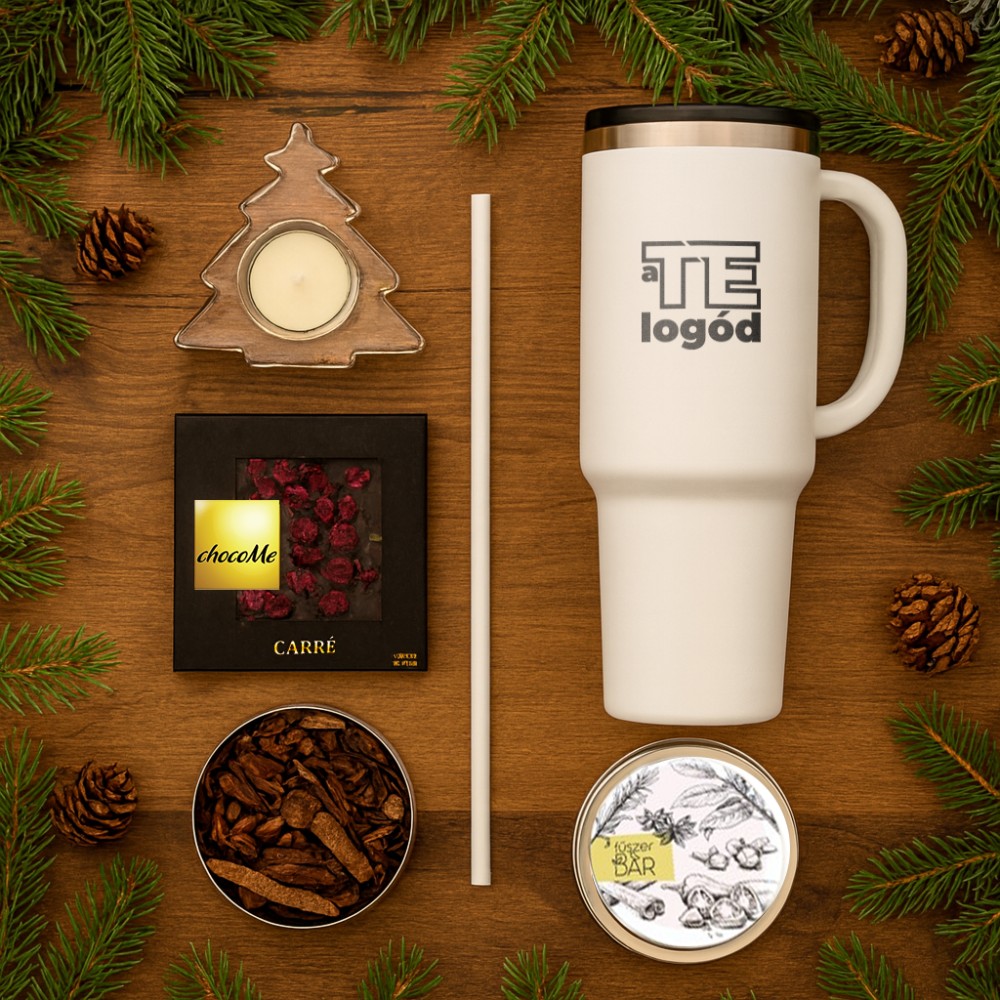 Illatos és ízletes válogatás, amely a téli fűszerek varázsát hozza el a mindennapokba. A csomag tartalma: duplafalú bögre szívószállal, 1200 ml (10080101), fenyőfa alakú üveg mécsestartó (4896-32), illatos forraltbor fűszerkeverék, 50 g (G0057), Chocome táblacsoki, 50 g (GCM0015) Csomagolási lehetőségekről érdeklődj ügyfélmenedzserednél! A kép illusztráció. A kínálatunkban szereplő termékek igény szerint kombinálhatók. A csomagot rendelés esetén állítjuk össze. Várható szállítási határidő: kb. 2 hét. A termékek emblémázását és csomagolását nem tartalmazza a csomag ára. A csomagban szereplő élelmiszerek csak csomag részeként rendelhetők. Csomagoló anyagok