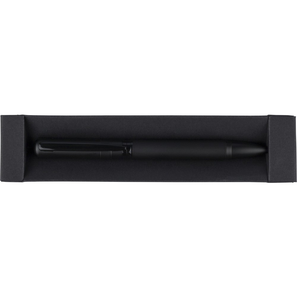 Ólommentes, környezetbarát Ecobrass rézötvözetből készült csavarós golyóstoll a toll színével harmonizáló fém klippel és forgó mechanizmussal. Kék színű, német Dokumental tollbetéttel felszerelve, megközelítőleg 1 000 méter íráshosszal. Darabonként fekete tolódobozba csomagolva.