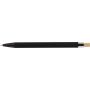 Újrahasznosított alumíniumból készült golyóstoll bambusz nyomógombbal és AS műanyag díszítéssel, fém klippel és a toll színével harmonizáló műanyag tollheggyel. A tolltesten lézergravírozott recycled (újrahasznosított) alapanyagra utaló logó található. Megközelítőleg 800 méter íráshosszúságú, kék színű tollbetéttel.