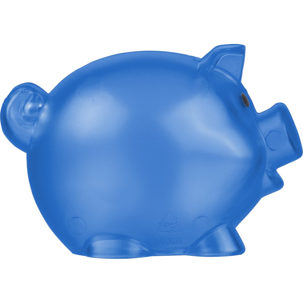 Újrahasznosított PS műanyagból készült, malacpersely. A hátoldalon recycled (újrahasznosított) alapanyagra utaló logó található.