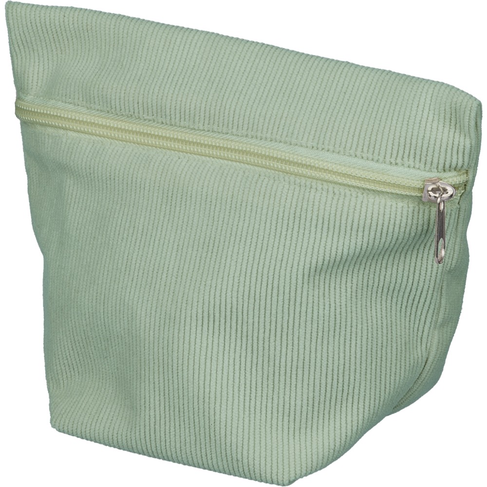 Kordbársony anyagból készült cipzáras kozmetikai táska egy fő rekesszel és biztonságos cipzáras zárással.