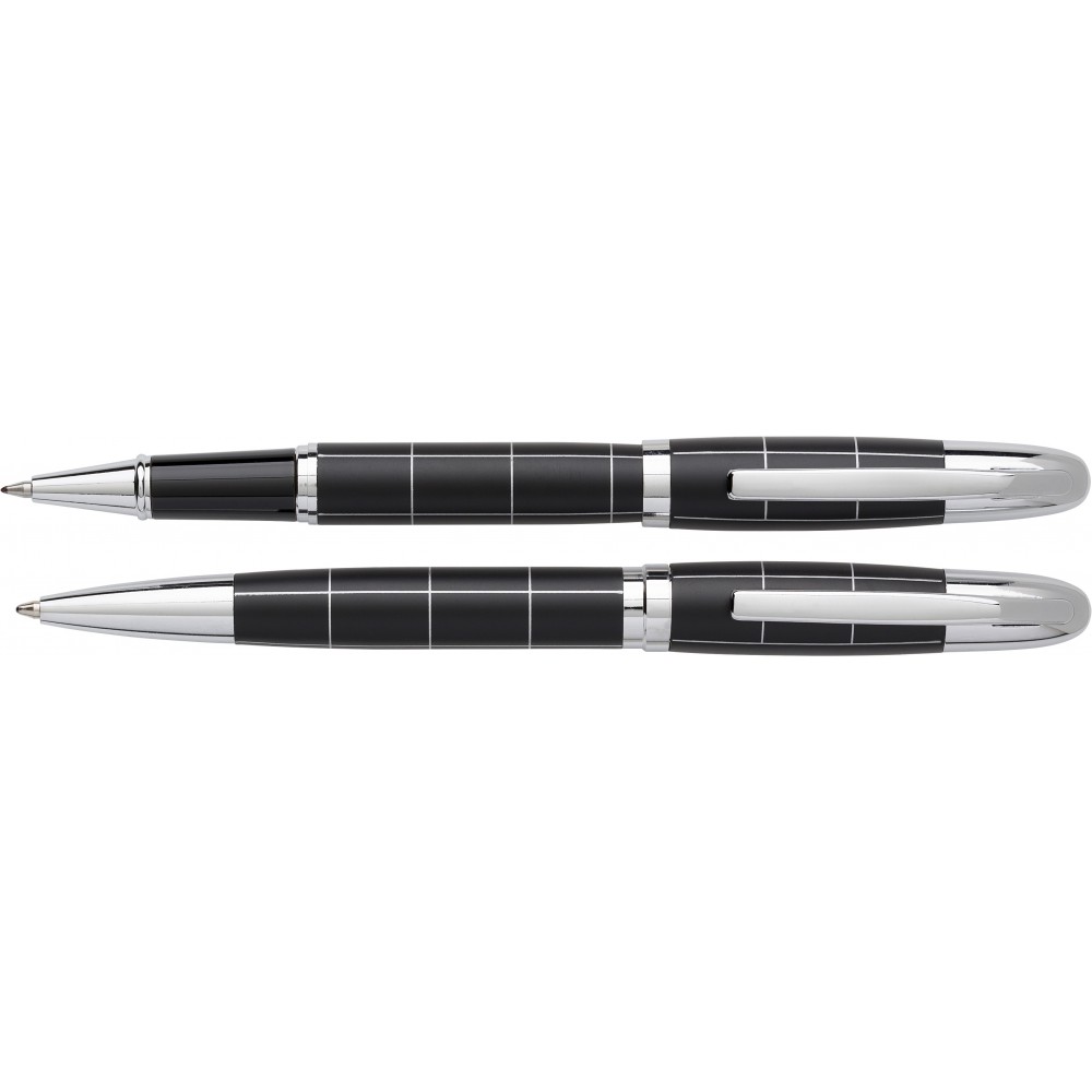 Fém rollerball és golyóstoll extra kék tollbetéttel, díszdobozban.