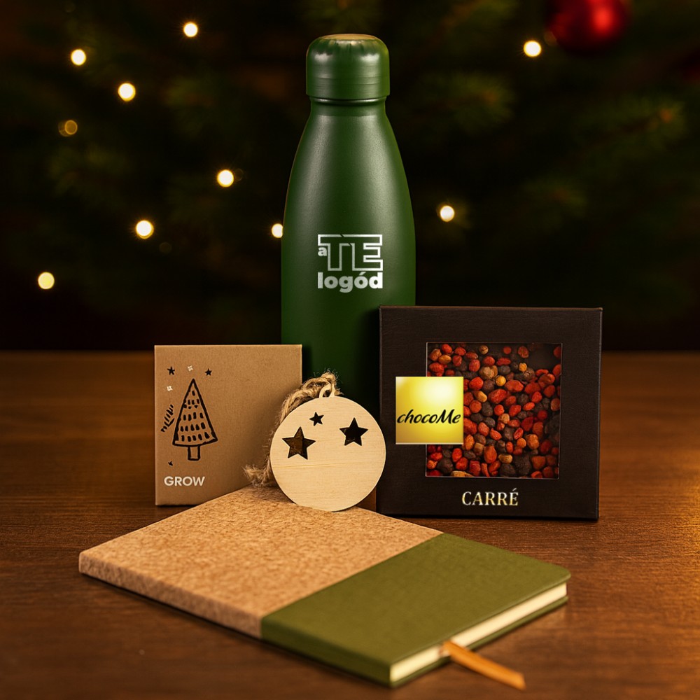 Az ünnep varázsát idézi meg ez az összeállítás, amely természetközeli hangulatot és melegséget sugároz. A csomag tartalma: duplafalú palack, 500 ml (1015134-04), parafa-pamut jegyzetfüzet, A5 méret (967381-04), Chocome táblacsoki, 50 g (GCM0015), karácsonyfadísz lucfenyő magokkal (CX1556-40). Csomagolási lehetőségekről érdeklődj ügyfélmenedzserednél! A kép illusztráció. A kínálatunkban szereplő termékek igény szerint kombinálhatók. A csomagot rendelés esetén állítjuk össze. Várható szállítási határidő: kb. 2 hét. A termékek emblémázását és csomagolását nem tartalmazza a csomag ára. A csomagban szereplő élelmiszer csak csomag részeként rendelhető.